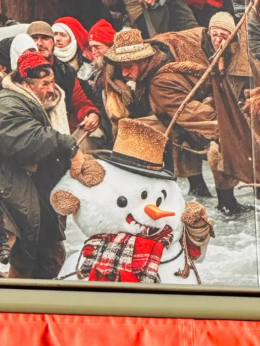 یک اثر هنری عظیم کریسمسی که هجوم انبوهی از حیوانات ناخوشایند و افراد شگفتانگیزی را که در کنار یک رودخانهٔ زمستانی مهمانی میگیرند، بهتازگی در کینگستون آنپون تیمز ظاهر شد. نکتهٔ کمتر واضح این است که آیا هوش مصنوعی دارای نقص برای خلق این دیستوپی عظیم به کار رفته یا خالق صرفاً قصد داشت دیواری را با آثار به سبک هرونیموس بوش پر کند.